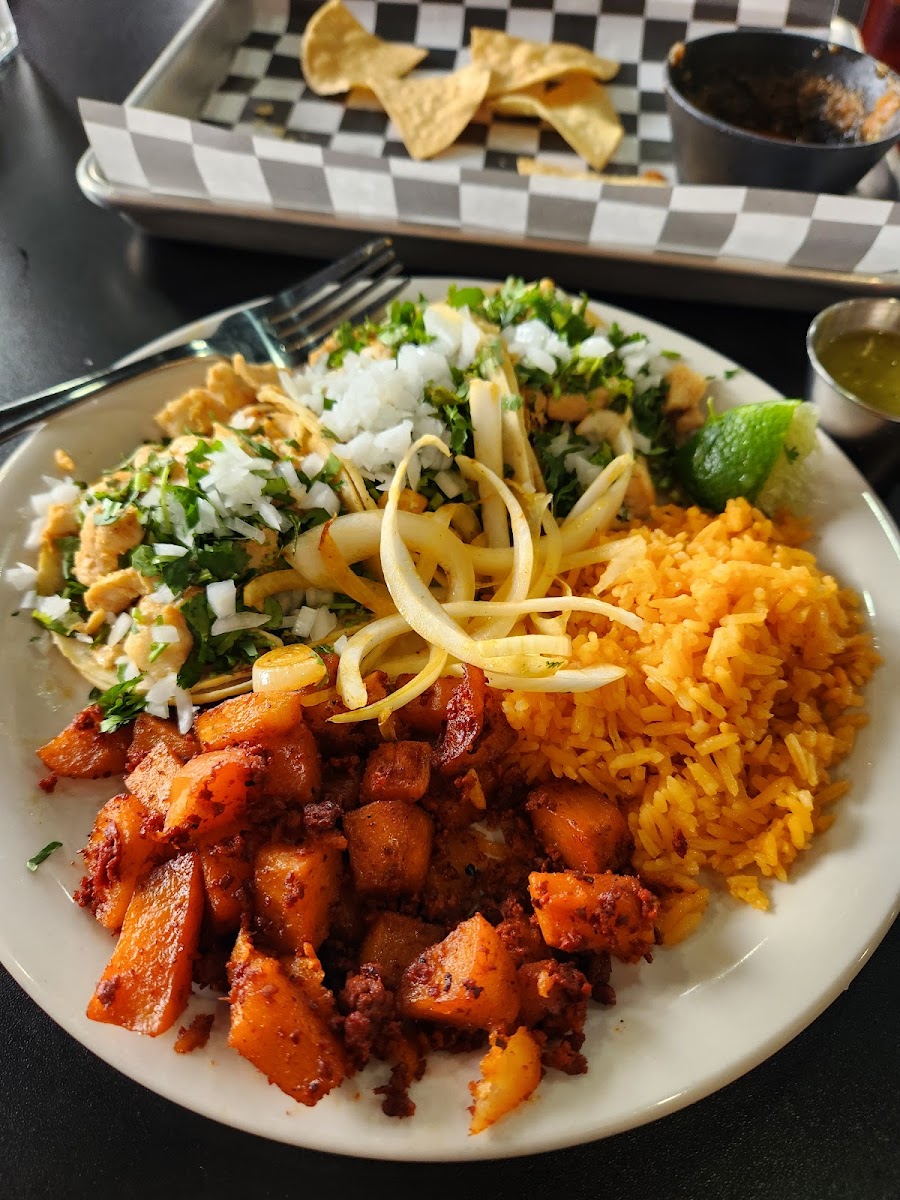 Great friendly service and it really is authentic Mexican food. Delicious street tacos, the refried beans were the best we've had in Oklahoma and the rice had authentic seasoning. The green sauce with tomatillo was delicious as was the red sauce. The red sauce is the hotter one. We ate at the bar today and enjoyed a cold Modelo with lime. Gordo's is true to their name. This is well worth the drive from OK city.