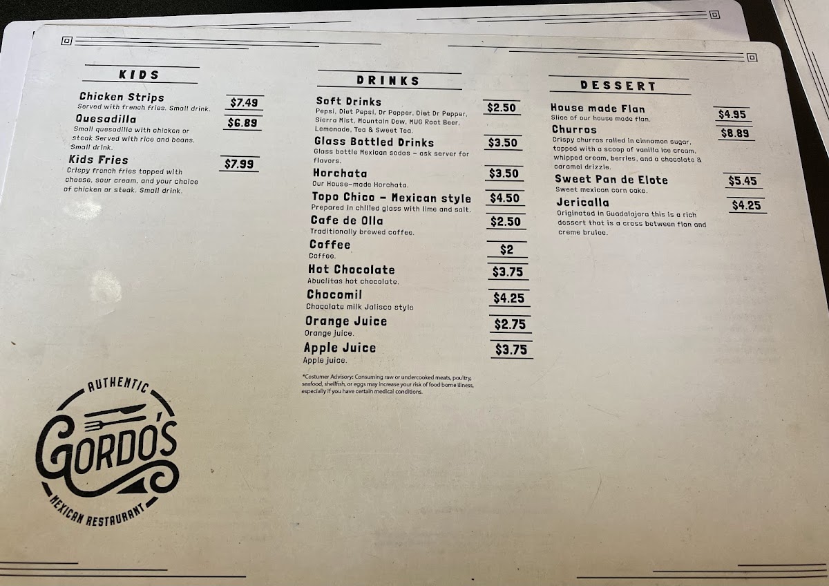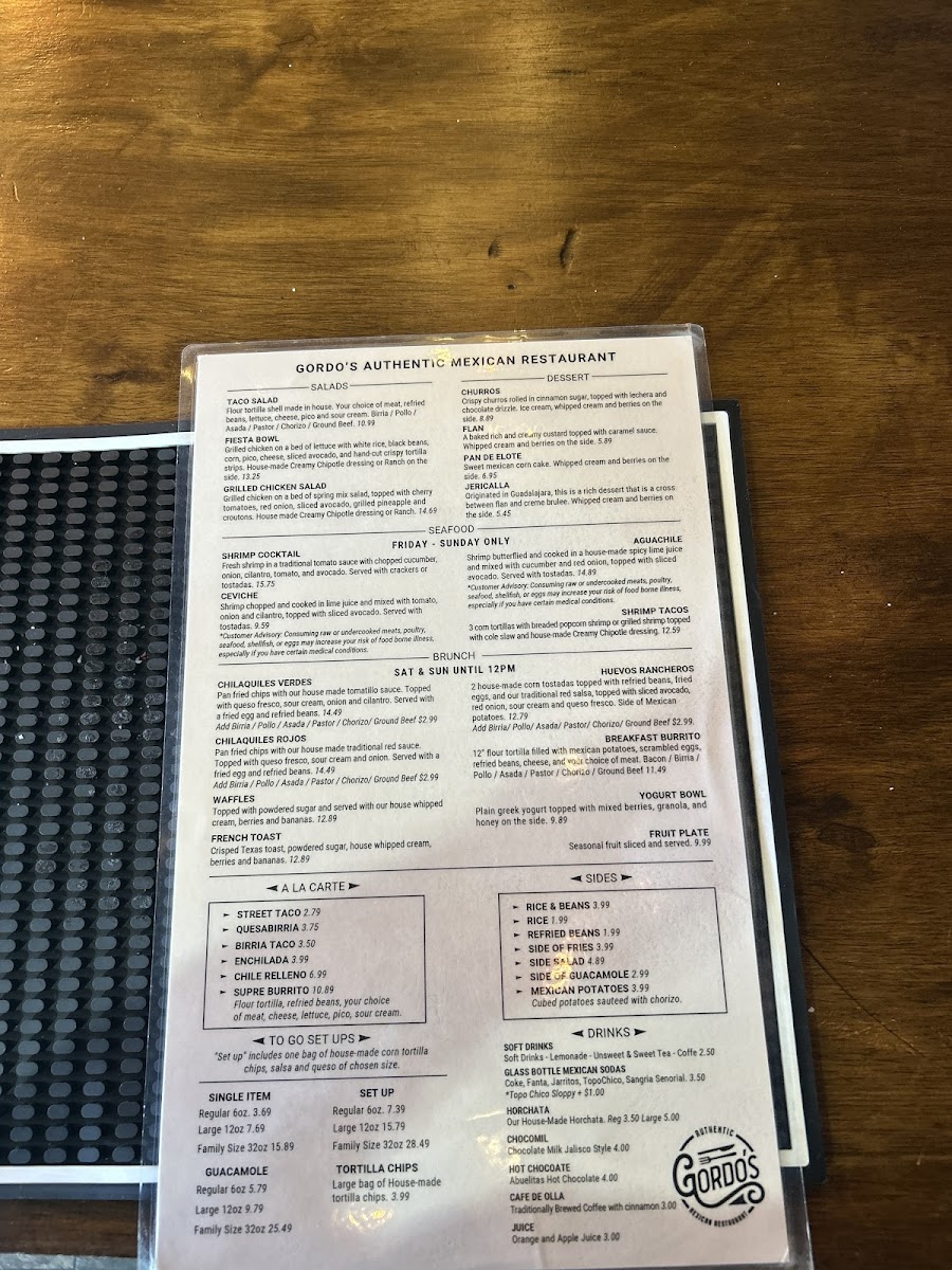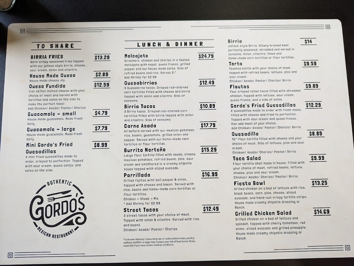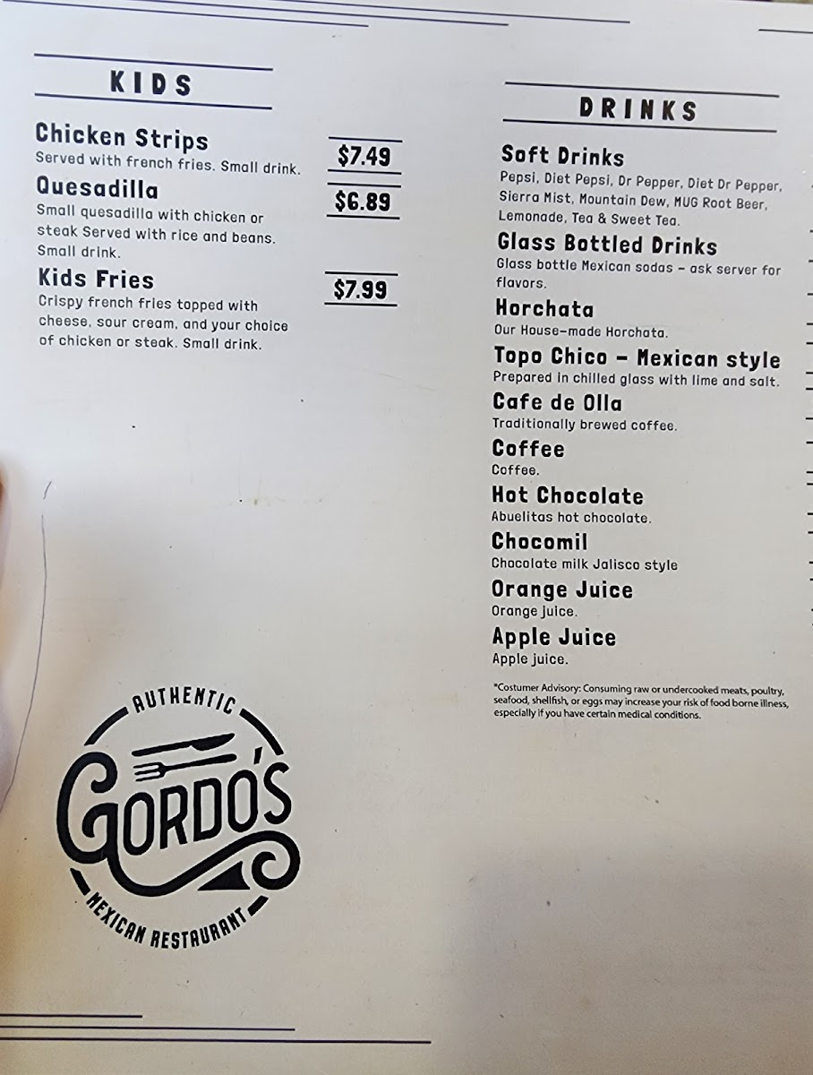 Gordo's Authentic Mexican Restaurant Menu